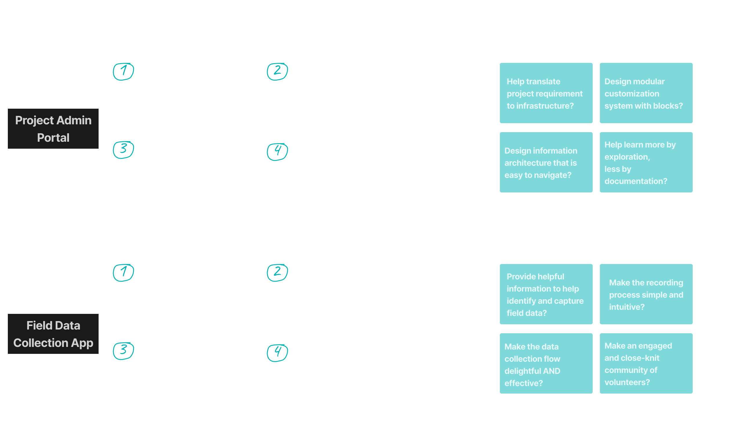 2 Design Sprints were conducted throughout the time span of 2 months, each Design Sprint was used to target each platform: Project Admin Portal and Field Data Collection App.