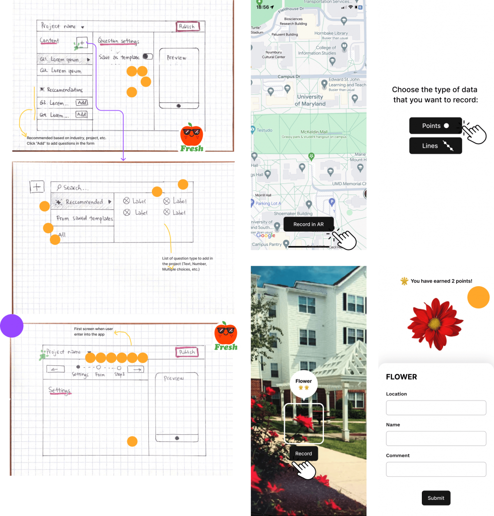 Each team member sketched out their ideas and we as a team decided on which one to pursue further. Once we settled on the final concepts, we rapidly developed wireframe prototypes ready for testing with users in the field.