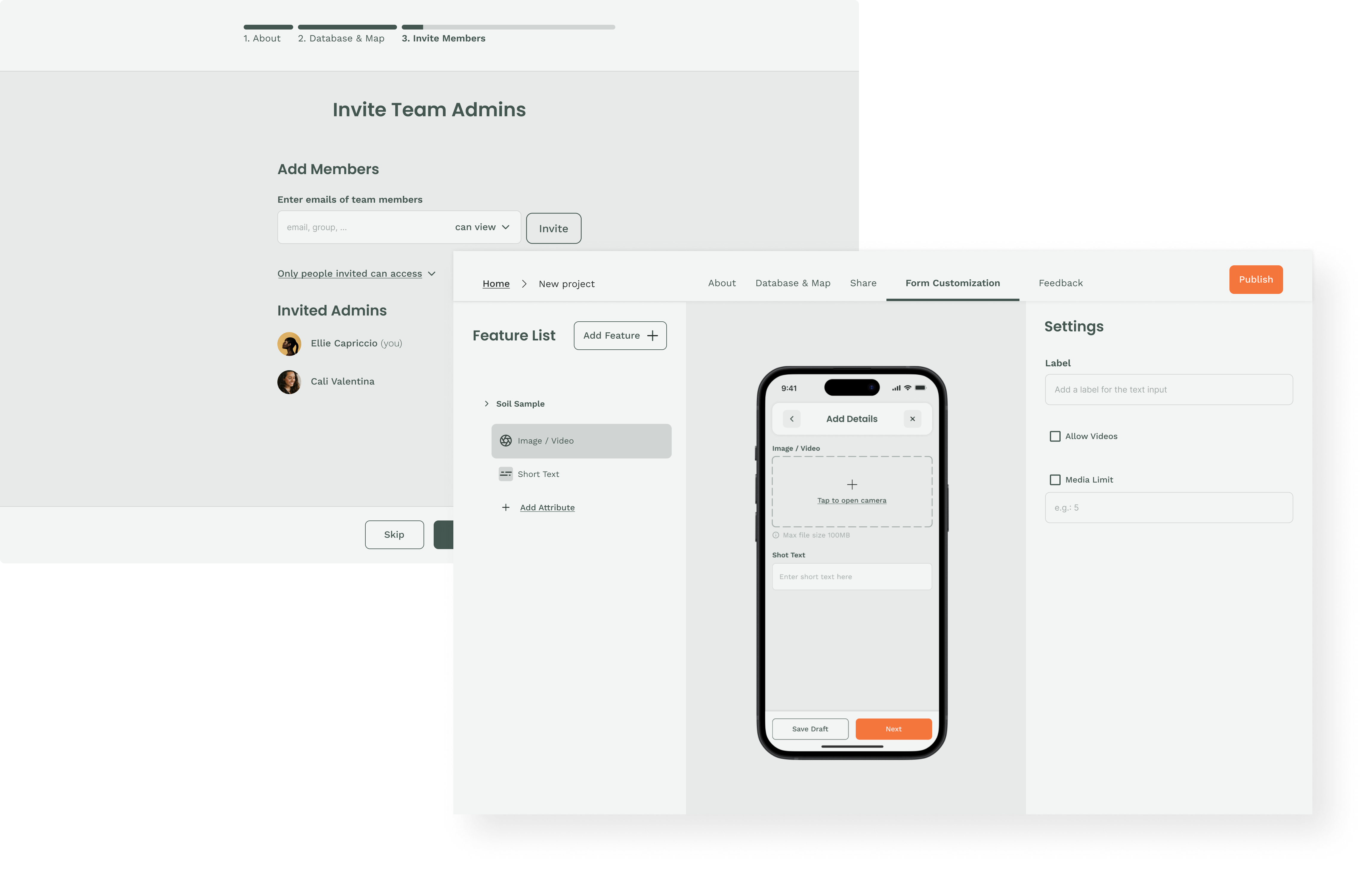 An Admin Portal that allows Project Admins to set up and customize the Field Data Collection mobile app.